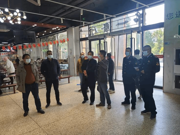黄巍巍一行对南北校区食堂、超市、校内服务用房进行实地查看和现场询问,检查了卫生许可证、食品经营许可证、营业执照和人员健康证,对商品上架摆放、食品外包装生产日期和保质期标识、生熟容器标识区分等管理规范进行现场指导,对重要场所灭蝇、风味窗口原料管理和水果切片售卖场所卫生要求提出了具体的意见和建议。